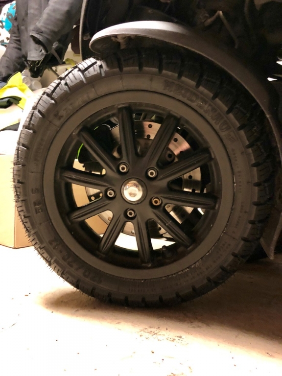 Cette année je monte le train avant et arrière (les dimensions des pneus avant ont, il me semble, changés avec le HPE) en Anlas SC-500 Wintergrip 2 - 110/70-13 TL 48S à l'avant et 140/70-14 RF TL 68S à l'arrière.