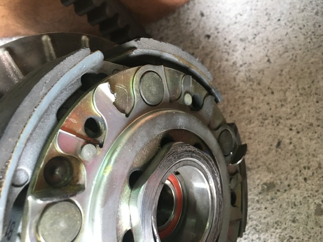 Oui tu fais bien de changer ton embrayage car tes patin sont bien abîmé, tes ailettes cassé sont peut-être du au manque de serrage de ton embrayage ? Car sur le mien on voyait du filetage au niveau du gros écrou alors que sur le tien non...